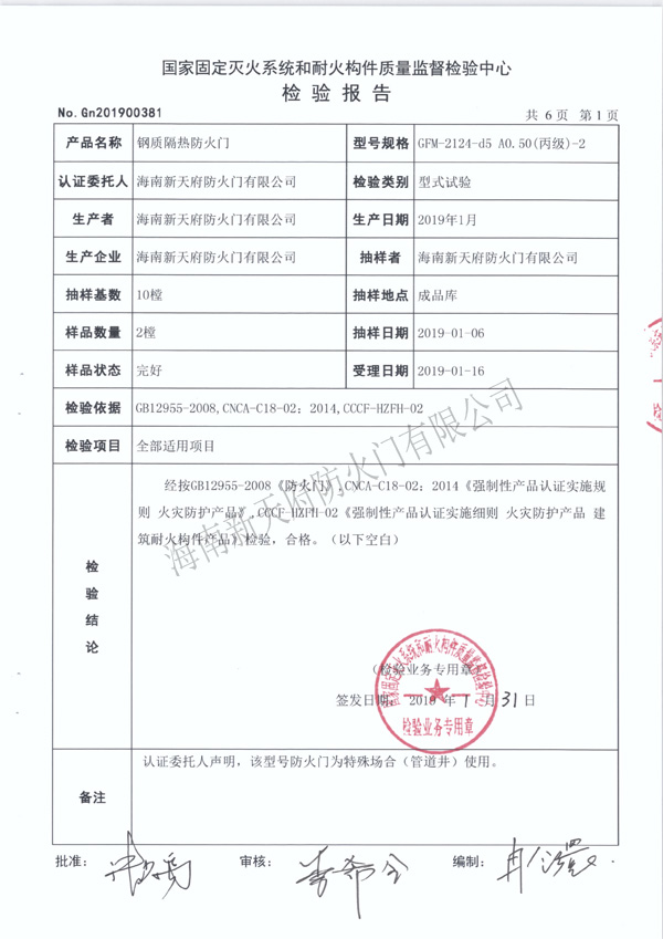 海南新天府防火門有限公司
